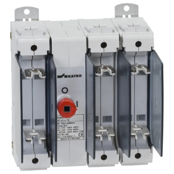 Rozłącznik Katko KVKE 3160 charakteryzuje się solidną budową, wysoką trwałością mechaniczną oraz możliwością podłączania przewodów o przekroju do 70 mm², co czyni go niezawodnym rozwiązaniem dla przemysłu, energetyki i automatyki.